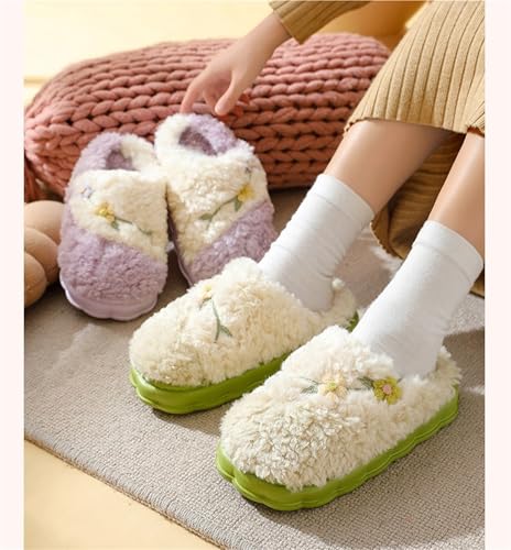 • 1. Quality details: The shoe body is made of plush and EVA sole, and the upper is made of finely stitched plush with embroidered flowers, which is soft, comfortable, warm, breathable, interesting, cute, fashionable and simple, suitable for both men and women, and can bring you a better experience