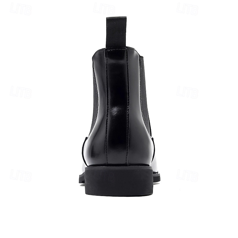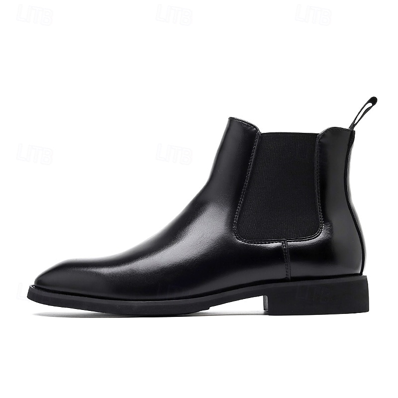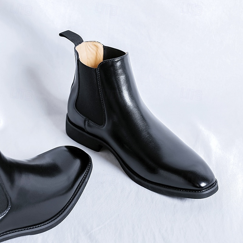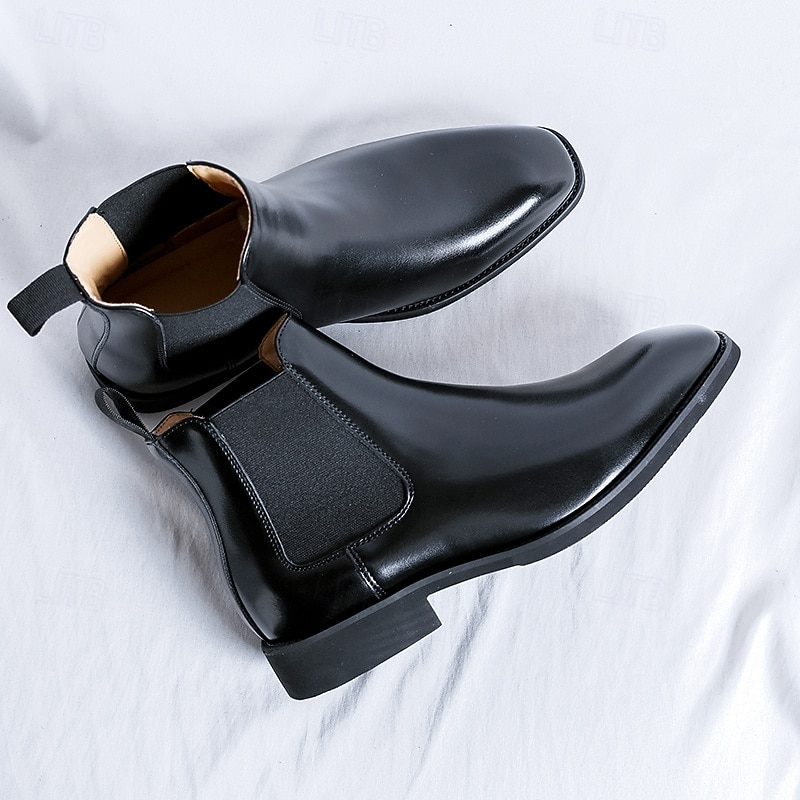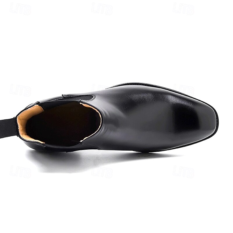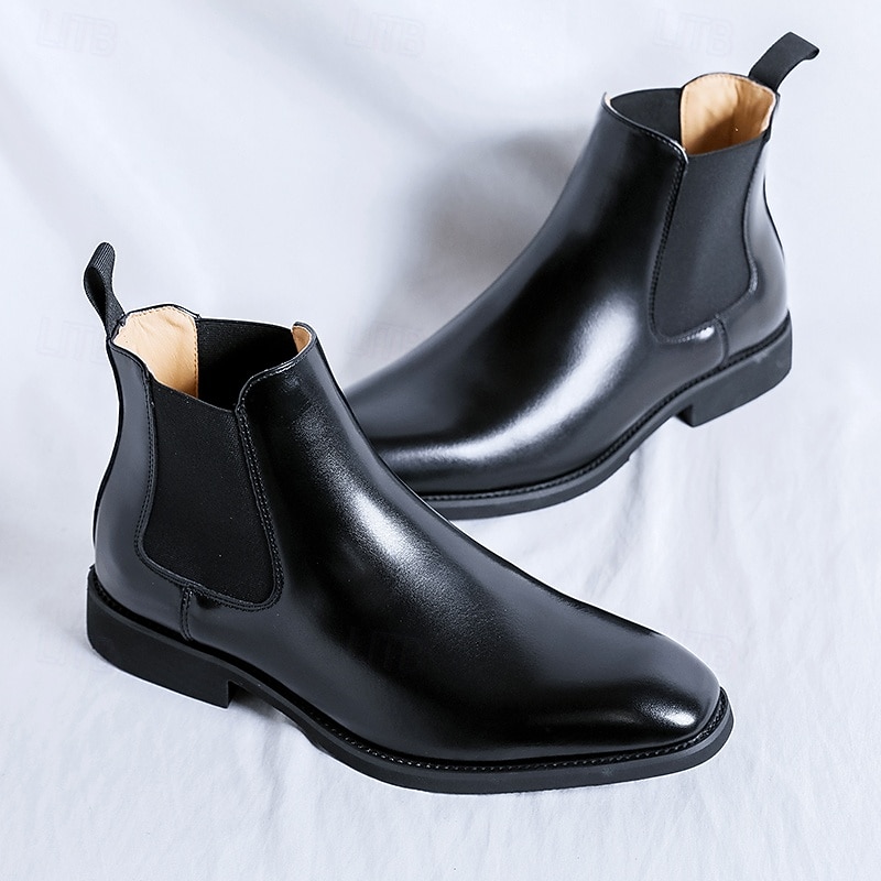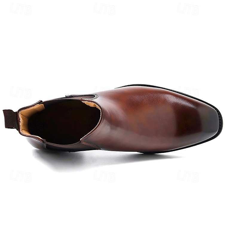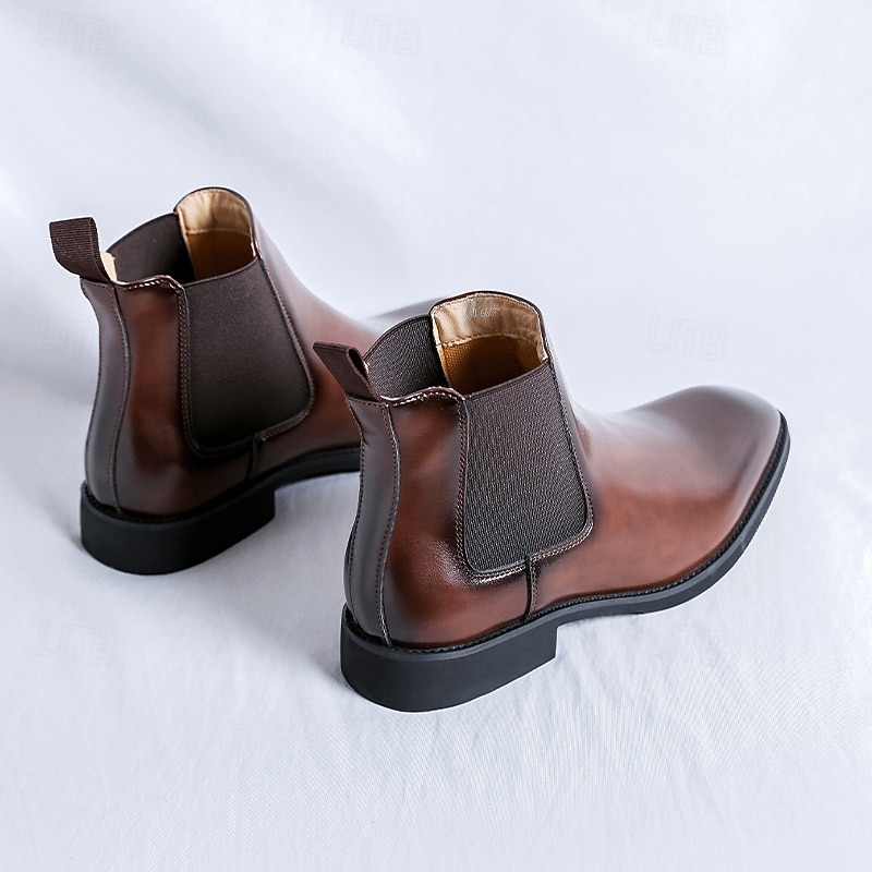 More information about Men's Polished Brown Faux Leather Chelsea Boots with Elastic Side Panels, Classic Business Dress Boots for Office Wear, Weddings and Evening Events