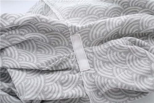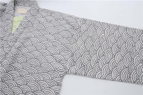 HOT ! ZEALMAX Kimono Japanese Shirt and Pant, Cotton Linen Loungewear Lounge Set Spa Bathrobe, Gray Waves