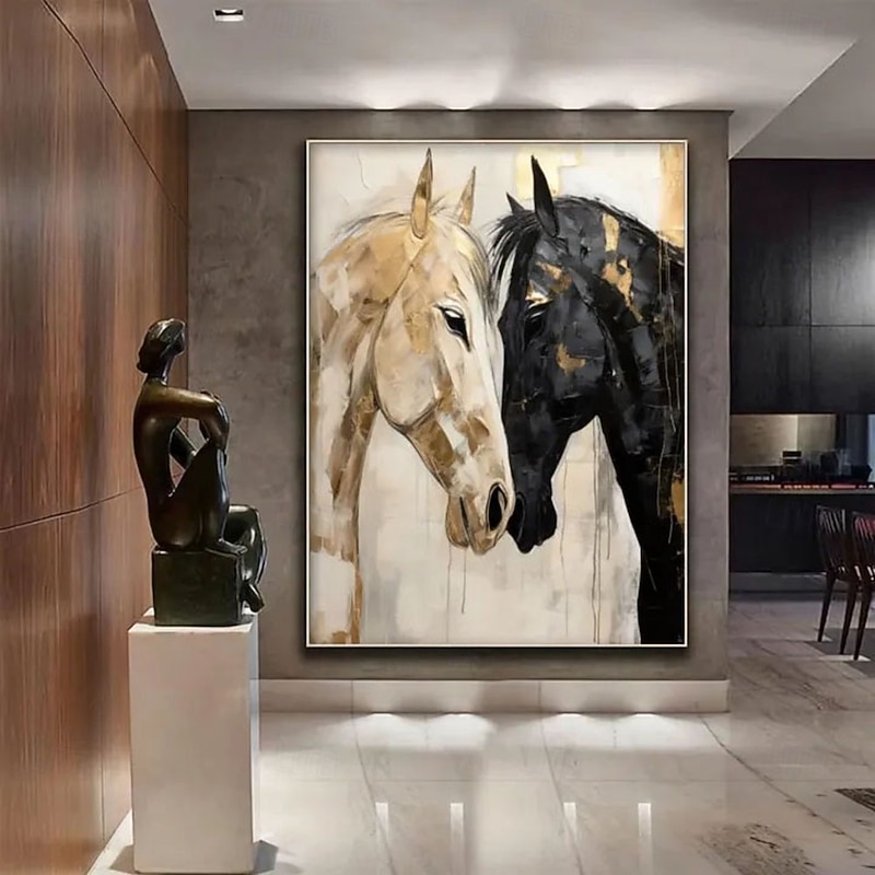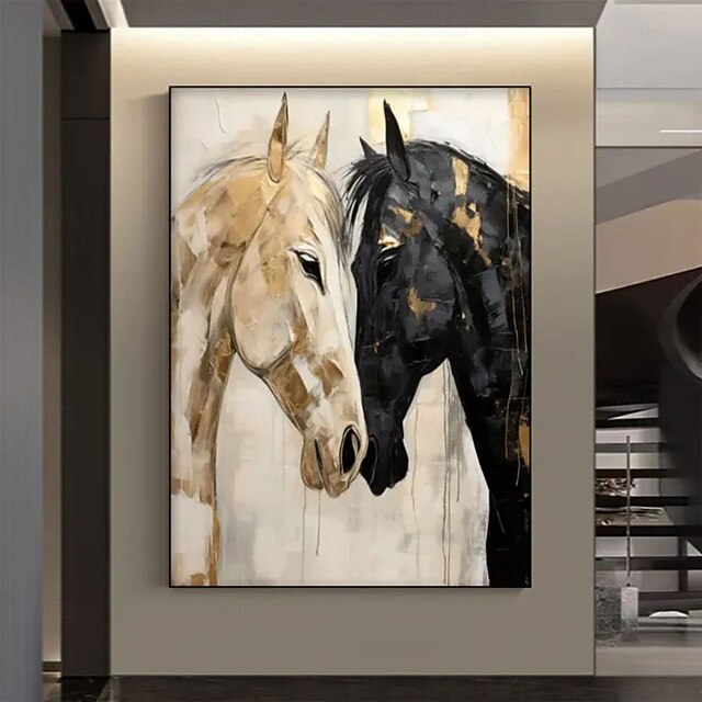 $77.99 - Handmade 3D Oil Painting Two Horses Portrait with Vibrant Gold Black Cream Tones Detailed Brushstrokes Layered Texture Rich Artistic Expression Modern Home Decor 2025. Shop for cheap Oil Paintings online? Buy at lightinthebox.com on sale today!