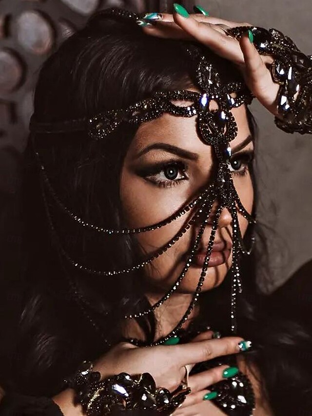 $26.99 - Women's Gothic Crystal Face Chain Headpiece - Black Rhinestone Mask Jewelry for Ladies, Mysterious Costume Accessory for Halloween Party, Masquerade and Nightclub Outfits 2025. Shop for cheap Halloween Accessories online? Buy at lightinthebox.com on sale today!