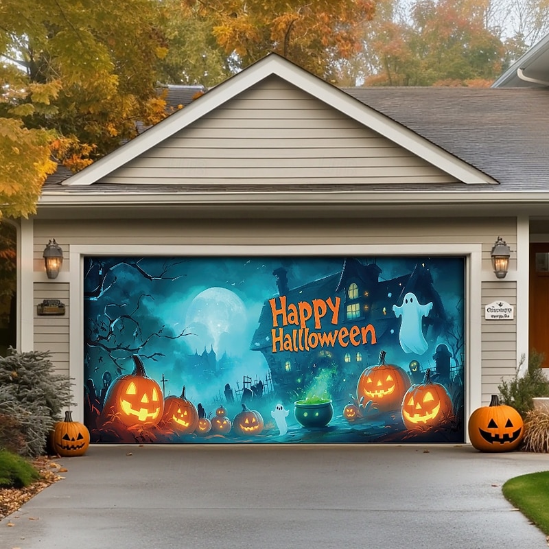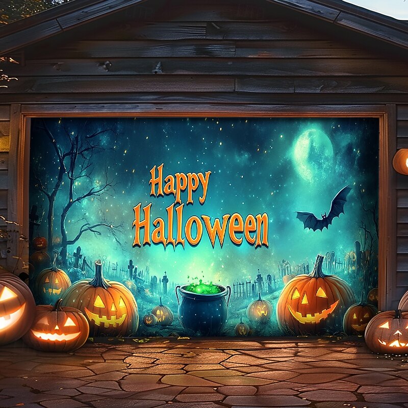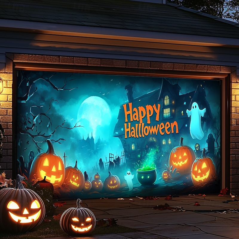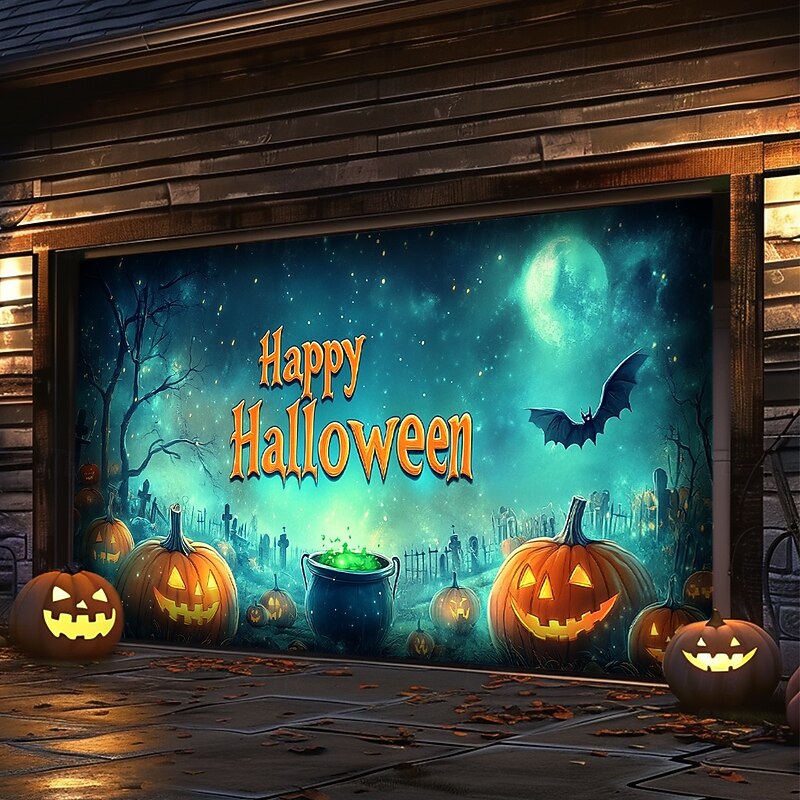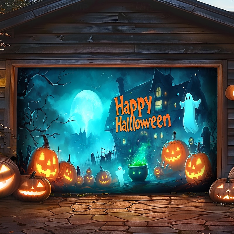 Jack O' Lantern Poison Pot Ghosts Town Outdoor Garage Door Cover Banner