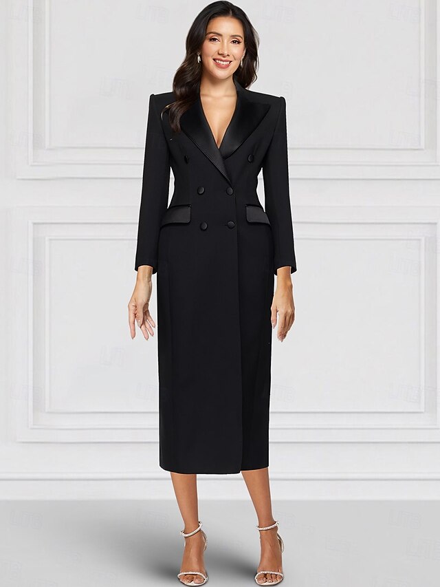 More information about Tuxedo Dress Sheath / Column Wedding Guest Stretch Crepe Elegant Simple 3/4 Sleeve Pleated Tea Length Peak Lapel