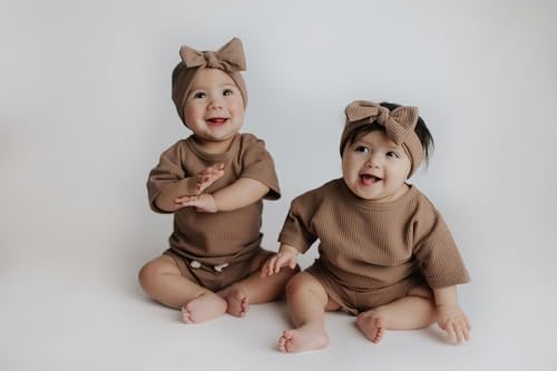 HOT ! Three Little Tots- Waffle Knit Knotted Headband Bow (Cocoa Sands)