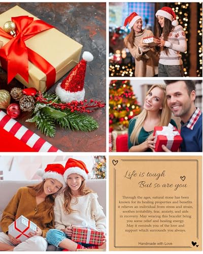 • 【Inspirational Gifts for Women】This Healing bracelets for women is handcrafted from natural stone; Natural stone has healing and purifying properties that help relieve pain anxiety and maintain calm, which can promote relaxation and bring happiness, confidence and self-love. come with a "Life is Tough But So are You" heartwarming message card, conveys your desire for support, compassion or encouragement, providing a source of comfort and strength. make a great healing gifts for Women