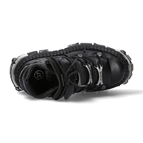 New Rock Boots WALL106-S10 Mens Metallic Black Leather Platform Gothic Boots 6