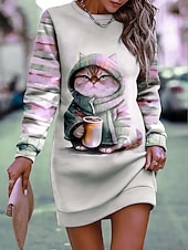 More information about Women's Pink Orange Gray Fall Winter Mini Dress Shift Dress Vacation Casual Outdoor Vacation Home Regular Fit Animal Geometric Plaid Crew Neck