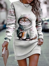 Women's Pink Orange Gray Fall Winter Mini Dress Shift Dress Vacation Casual Outdoor Vacation Home Regular Fit Animal Geometric Plaid Crew Neck 7