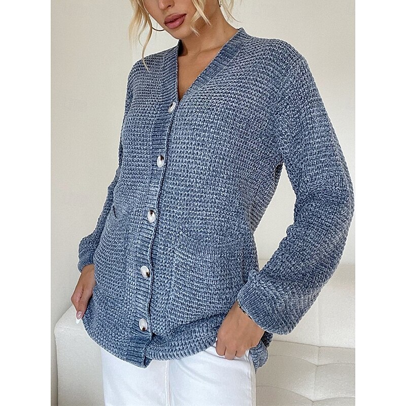 More information about Women's Sweater Cardigan Casual Soft Pure Color Ribbed V Neck Buttons Pocket Knitted Long Sleeve Long Tops Knit Outdoor Daily Weekend Pink Blue Fall Winter