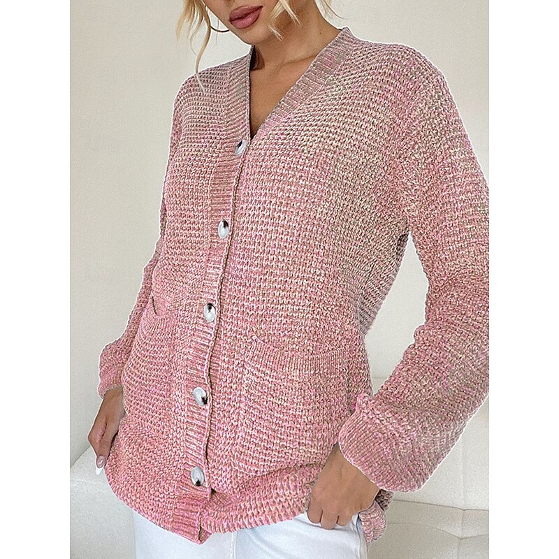 HOT ! Women's Sweater Cardigan Casual Soft Pure Color Ribbed V Neck Buttons Pocket Knitted Long Sleeve Long Tops Knit Outdoor Daily Weekend Pink Blue Fall Winter