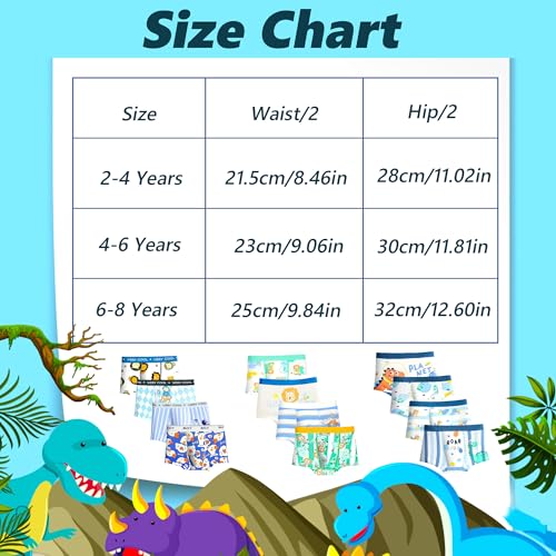 GRPSKCOS Boys Underwear, Toddler Kids Boxer Briefs 4 Pack Soft Cotton Dinosaur Boys Underwear 2-8 Years 7