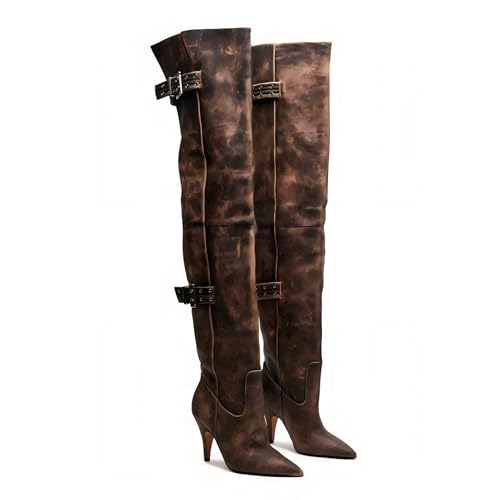 • Stiletto heel boots:These pointed toe western cowgirthigh high boots,heel height is approximately 3.5 inches,visually lengthening your height,and they are made of soft material,showing a retro dark brown and black with an elegant and simple texture,they are very durable and comfortable