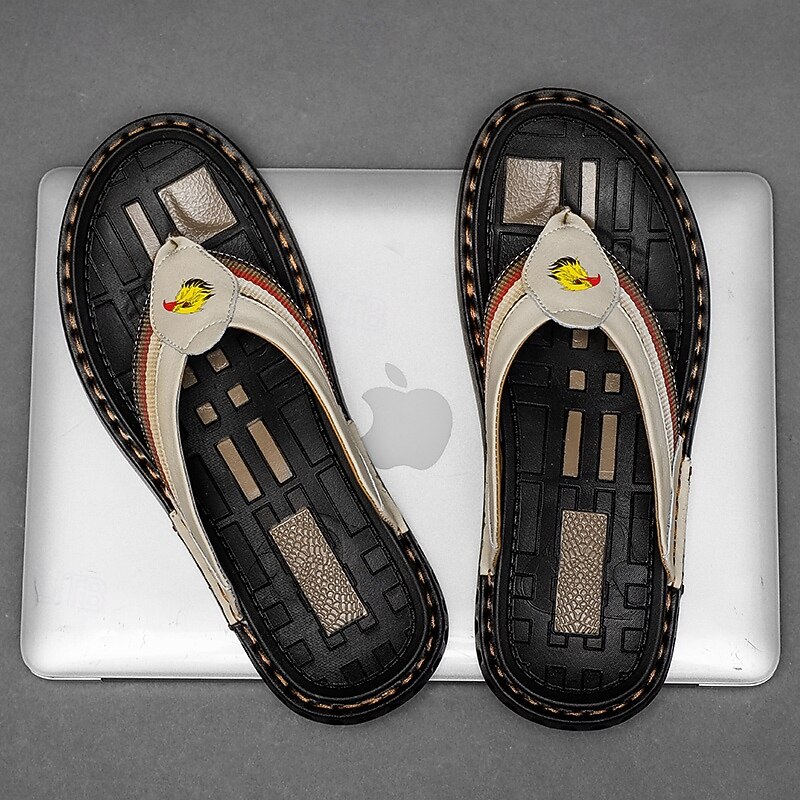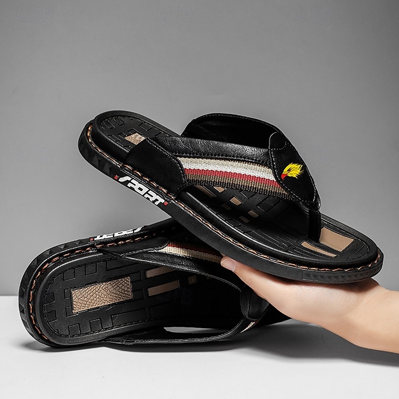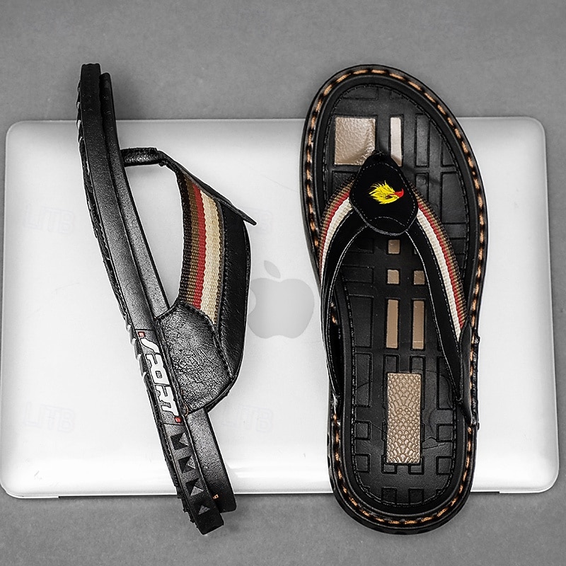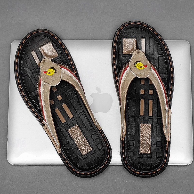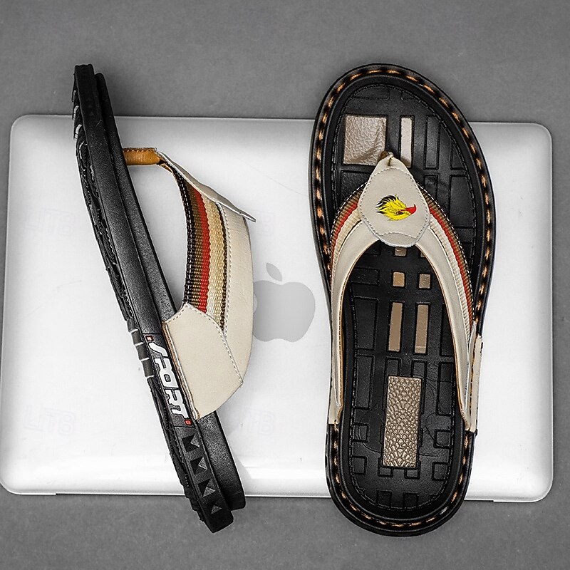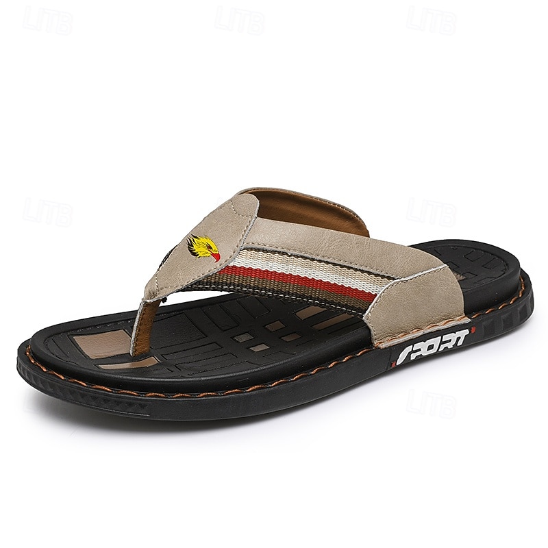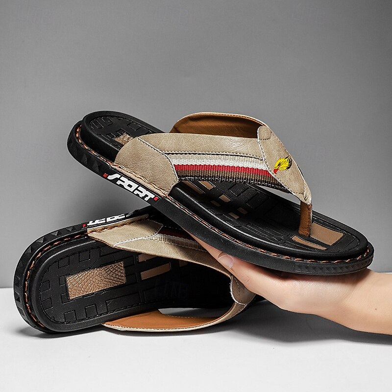 HOT ! Men's Slippers & Flip-Flops Split Leather Breathable Comfortable Slip Resistant Loafer Black Khaki Beige