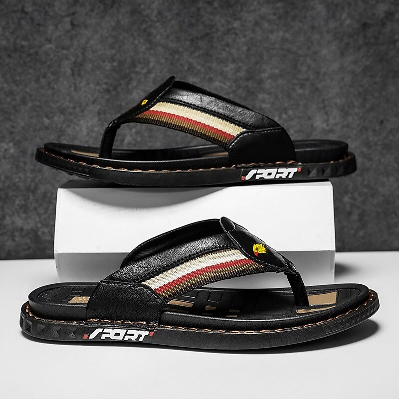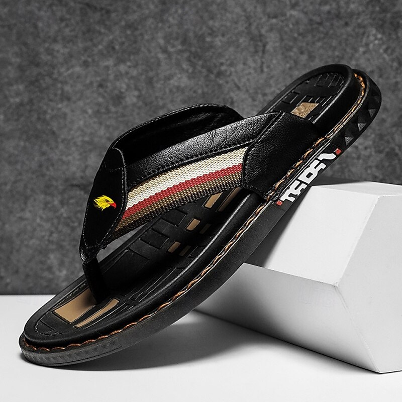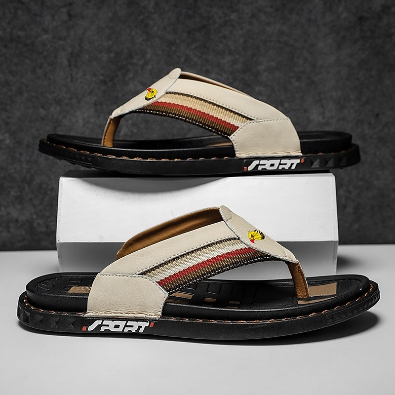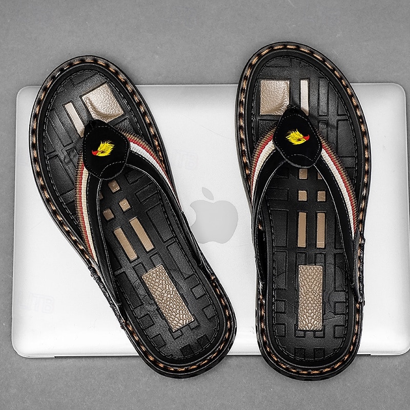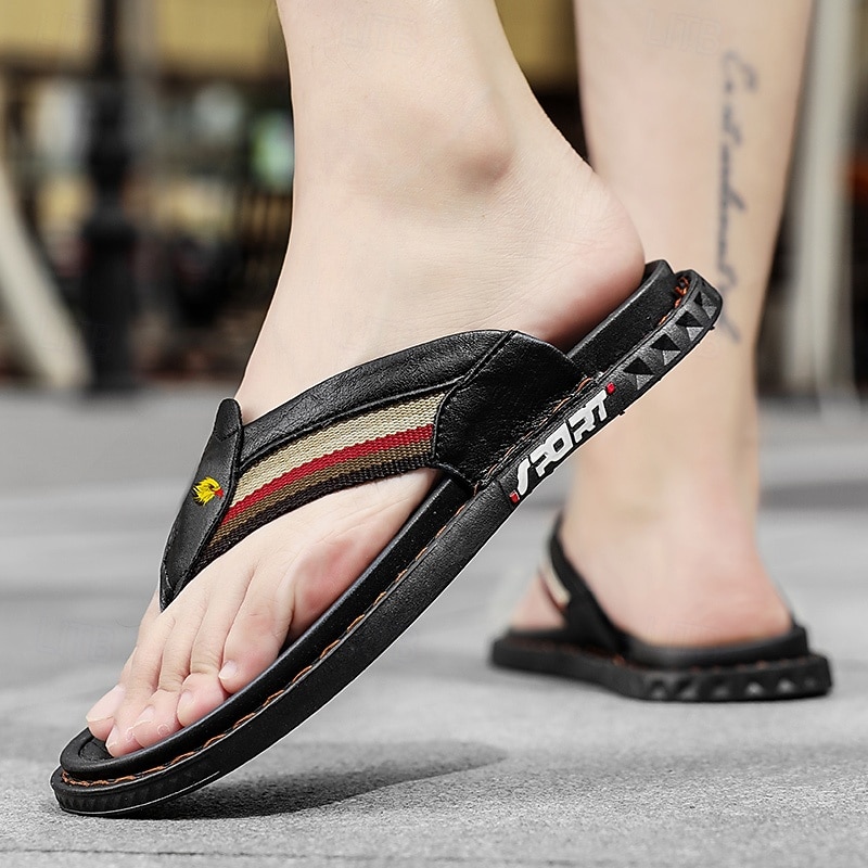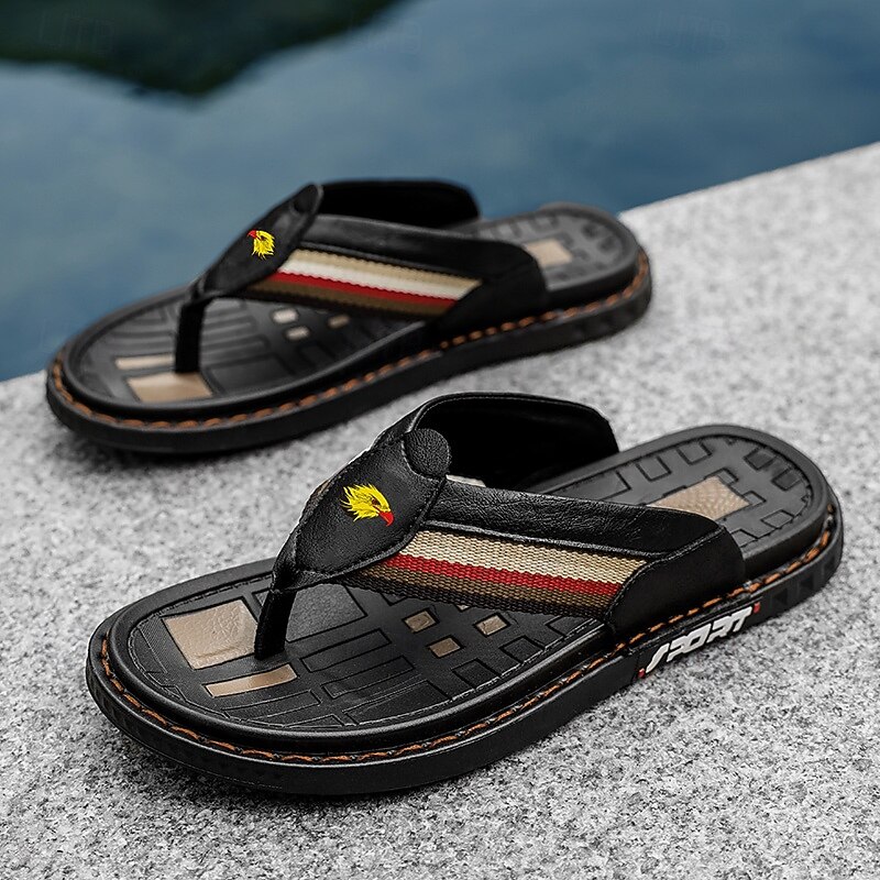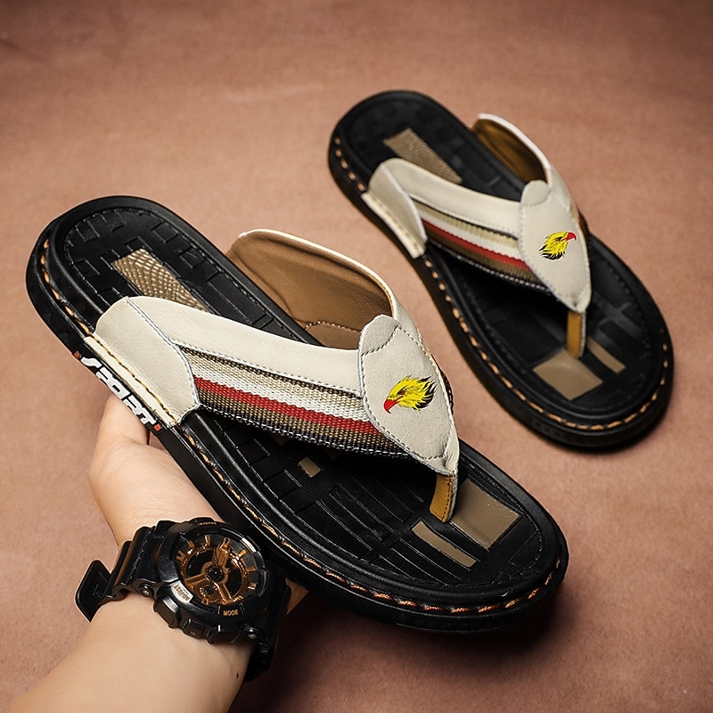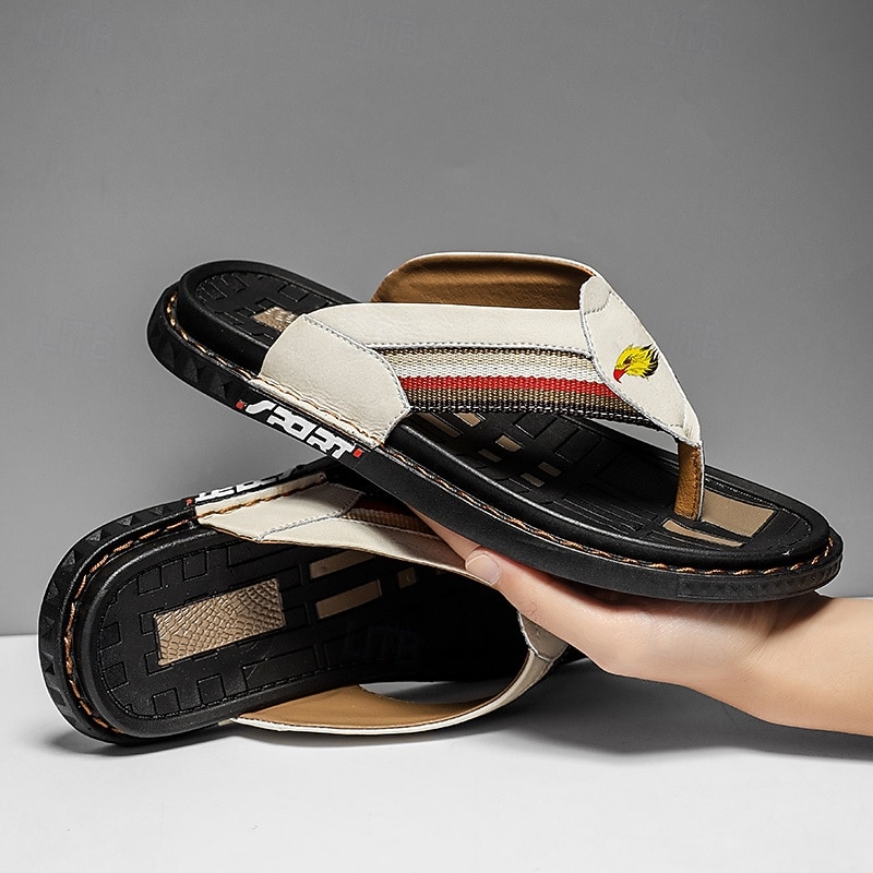 HOT ! Men's Slippers & Flip-Flops Split Leather Breathable Comfortable Slip Resistant Loafer Black Khaki Beige