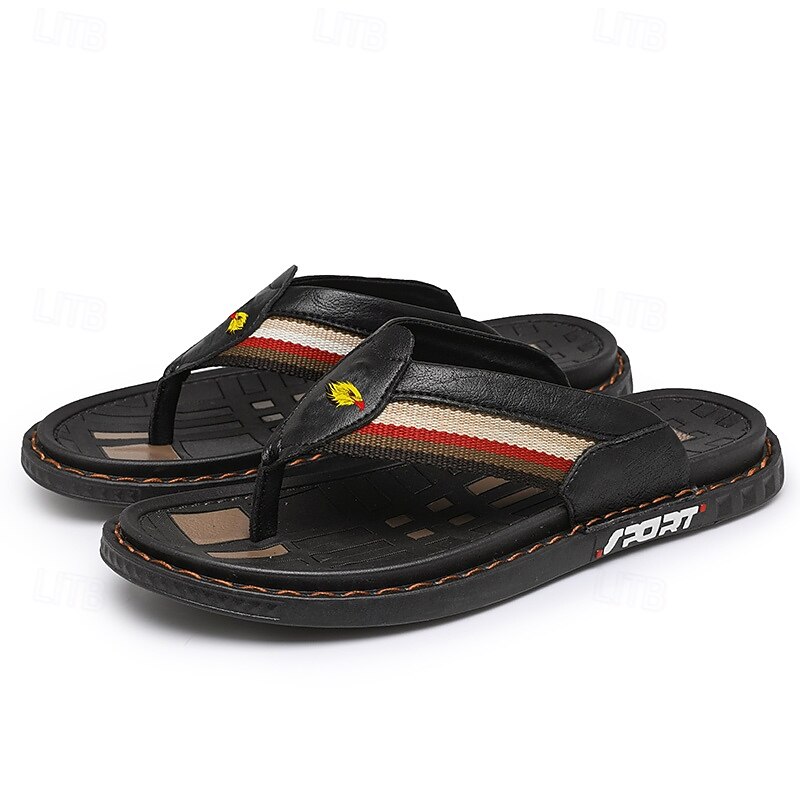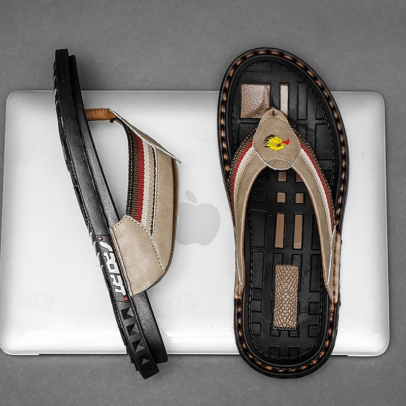 More information about Men's Slippers & Flip-Flops Split Leather Breathable Comfortable Slip Resistant Loafer Black Khaki Beige