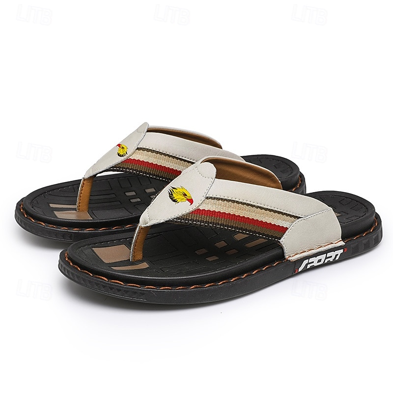 Men's Slippers & Flip-Flops Split Leather Breathable Comfortable Slip Resistant Loafer Black Khaki Beige 1