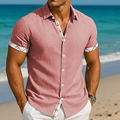 More information about Men's Geometric Linen Shirt Summer Shirt Beach Shirt Short Sleeve Fashion Casual Vacation Holiday Beach Wear Summer Spring Turndown Collared Shirts Front One Pocket Pink Blue Green