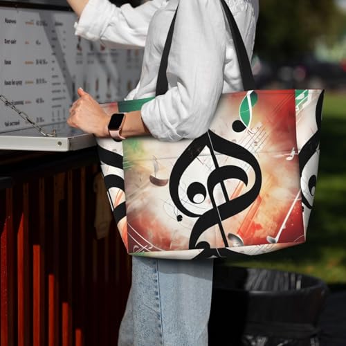 • Music Notes Print This Beach Tote Bag Provides A Extra Space To Accommodate All Beach Essentials. It Serves As A Versatile Bag, Perfect As A Gym Bag For Women, Travel Bag Or Pool Bag.