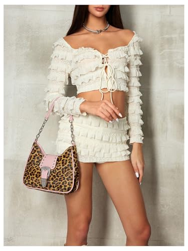 HOT ! Verdusa Women's Y2K Leopard Rhinestone Leather Bag Chain Strap Studded Shoulder Bags