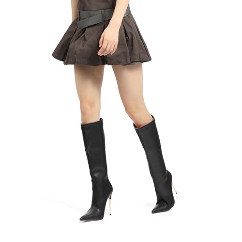• Knee high booties: Featuring pointy toe, high stiletto heel, finished with cushioned insole, soft interior lining, and back zipper closure for easy on/off.
