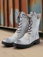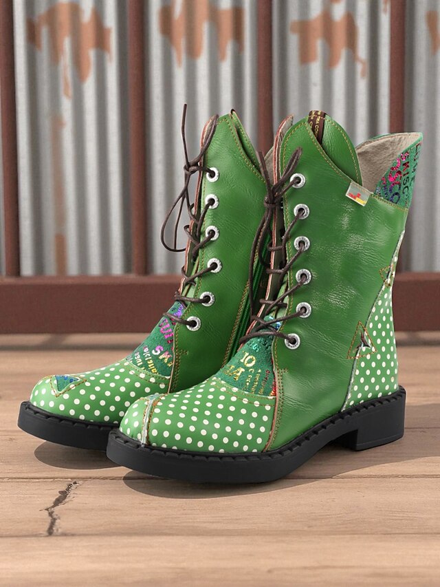 More information about Women's Genuine Leather Green Polka Dot Combat Boots – Retro Lace-Up Boots for Outdoor Fashion and Festivals