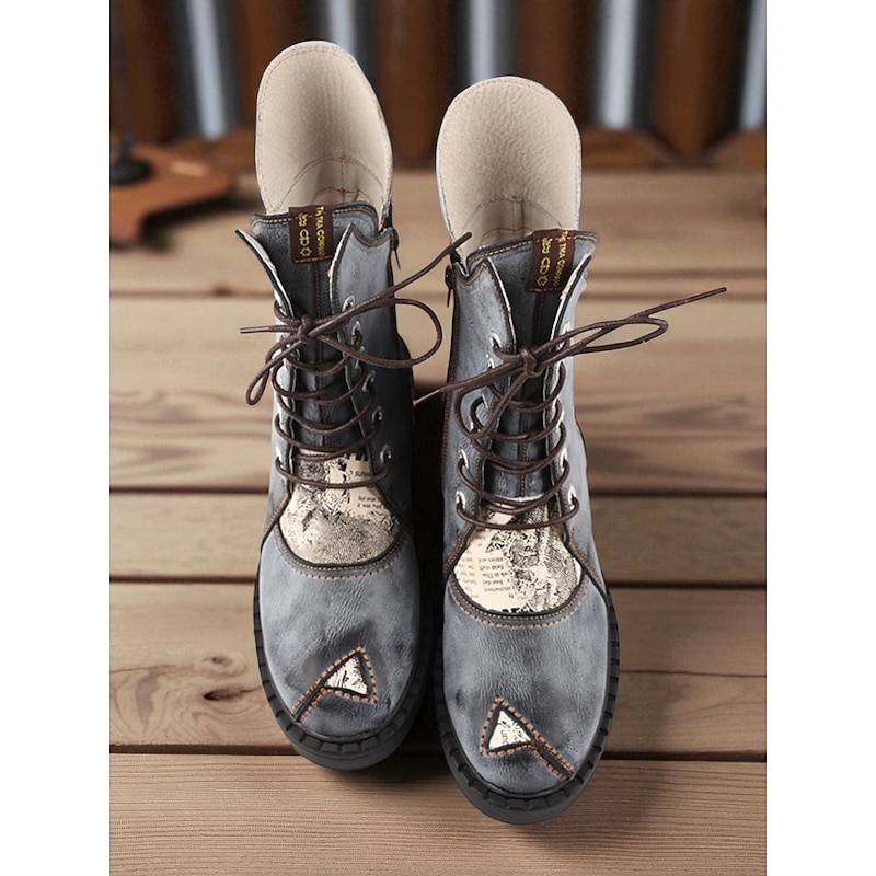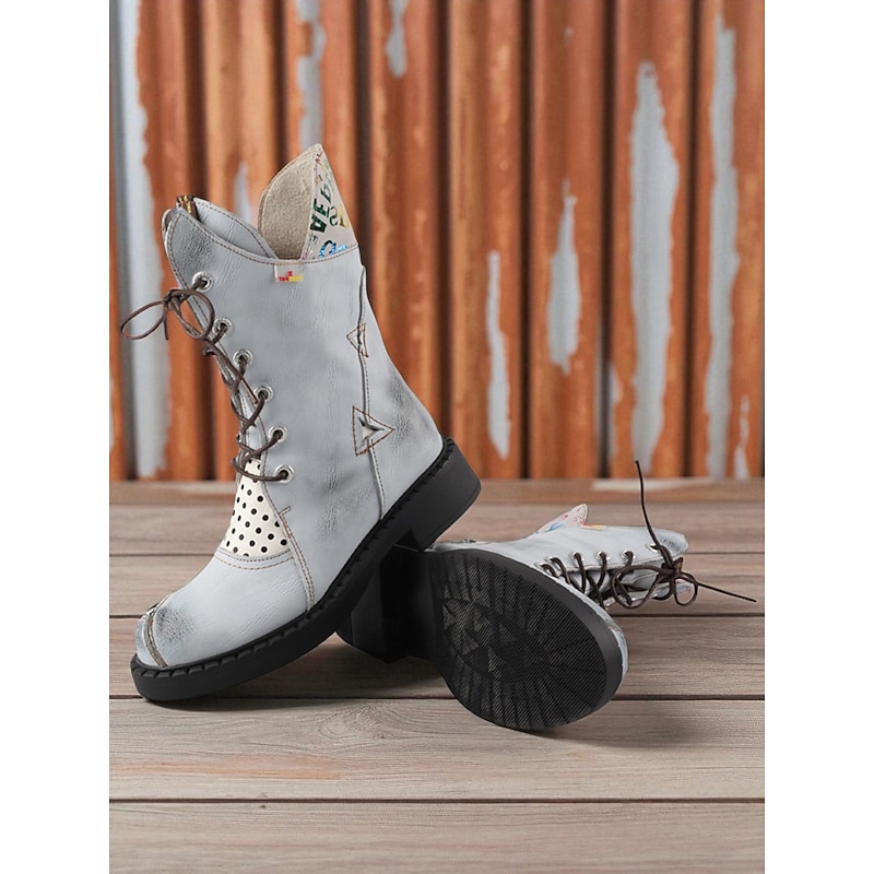 Women's Genuine Leather Green Polka Dot Combat Boots – Retro Lace-Up Boots for Outdoor Fashion and Festivals 16