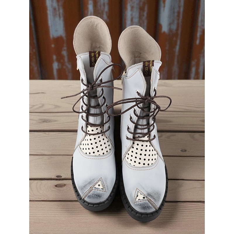 Women's Genuine Leather Green Polka Dot Combat Boots – Retro Lace-Up Boots for Outdoor Fashion and Festivals 4