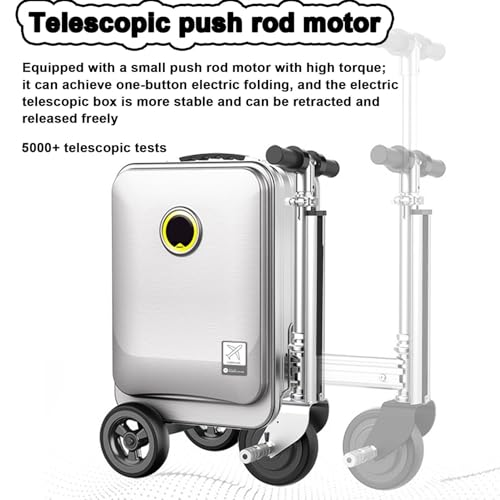 • ◉ MAKE TRAVEL EASIER: Our motorized scooter suitcase will revolutionize the way you travel! Smart luggage is an ultimate travel companion that will make your trips easier and more enjoyable. With its built-in electric motor, this electric suitcase you can ride allows you to glide effortlessly through the airport or train station. No more struggling to haul heavy bags through crowded terminals, simply press a button to transform the aluminum luggage into a suitcase scooter!