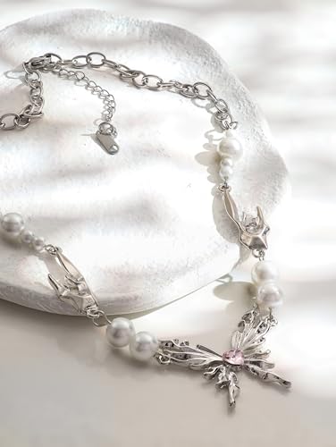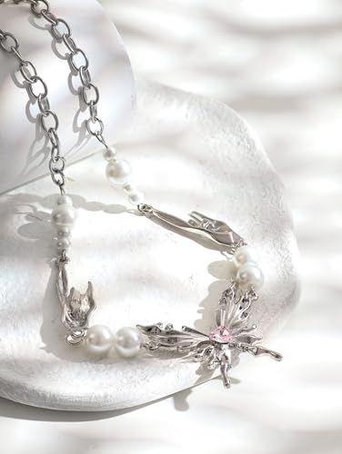 • MATERIALS & DETAILS: Our Butterfly Necklace is made with stainless steel chain mixed faux pearls and a grunge butterfly aesthetic pendant