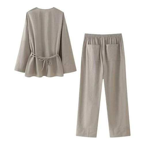• ❀Feature: Relaxed fit shirt, label collar long sleeves with buttoned cuffs, button up front, unlined, not sheer. Linen sets for women 2 piece.