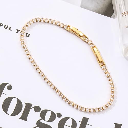 • High Quality Material: The tennis bracelet is made of brass with oval 3*2mm AAA+ cubic zirconia stones, 14k gold plated for ensuring long-lasting shine and durability. Nickel-free, lead-free and hypoallergenic for sensitive skin, perfect for everyday wear