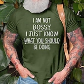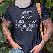 Highlights [Fabric] : Crafted from 100% cotton, this T-shirt provides a soft and breathable feel with a touch of micro-elasticity, ensuring comfort throughout the day. [Fit] : The slim form fit enhances the body’s natural silhouette without being restrictive, offering a modern and flattering look with short sleeves for added ease of movement. [Design Highlights] : Featuring a bold graphic print with the humorous slogan "I AM NOT BOSSY I JUST KNOW WHAT YOU SHOULD BE DOING," this T-shirt stands out. The classic crew neck adds a timeless touch, while the hot stamping technique gives the design a durable and stylish finish. [Occasions] : Ideal for a variety of settings, this T-shirt is perfect for casual outings, daily wear, outdoor activities, and even holiday parties. Whether you're running errands or socializing with friends, it adds a touch of wit and style to any ensemble. [Size Range] : Available in a range of sizes from S to XXL, this T-shirt caters to a broad spectrum of body types, ensuring a comfortable and personalized fit for everyone.