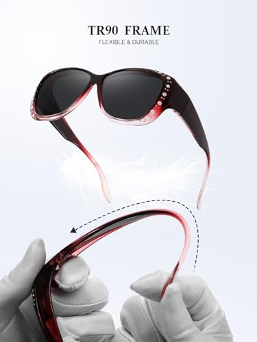 • RETRO FAME WITH RHINESTONE: Fit over wraparound sunglasses are designed with modern women in mind, and large fame with rhinestone, the sleek silhouette of these sunglasses not only complements any look you're going for, but also redefine your outdoor experiences, embrace the sun with confidence and style.