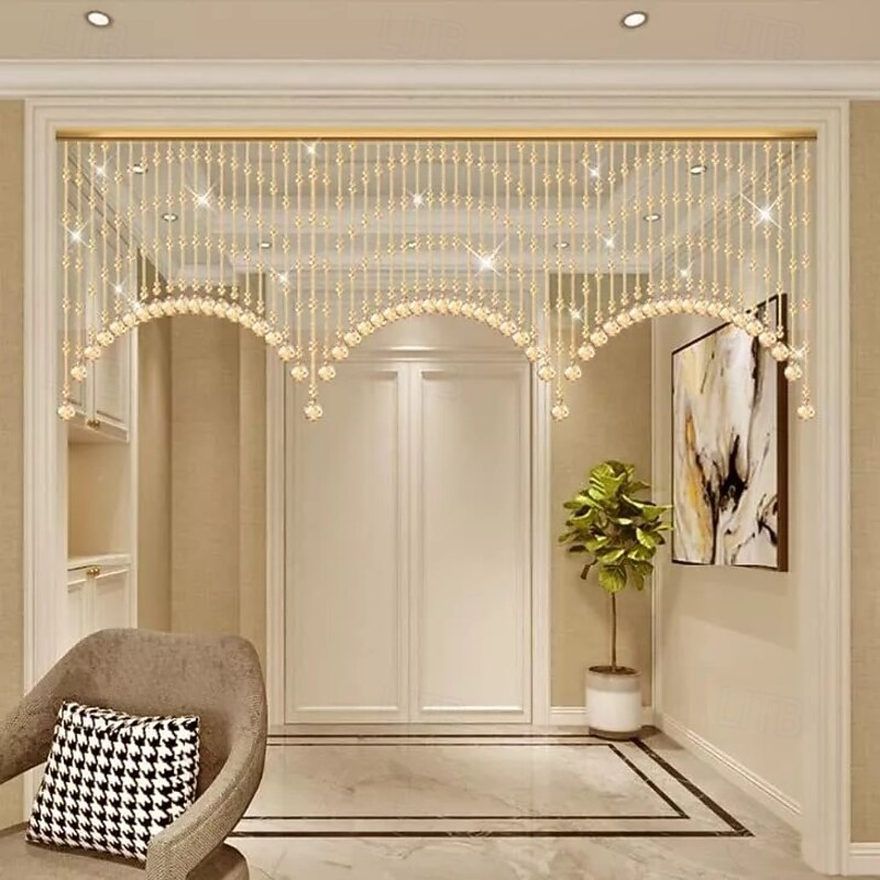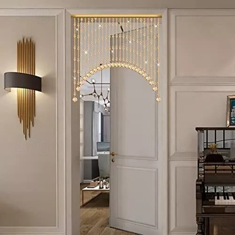Highlights ✨ Premium Crystal Glass Beads Crafted from high-quality natural crystal glass, this beaded door curtain offers superior transparency, shine, and elegance. Each bead sparkles in the light, adding a luxurious, romantic touch to your space. The beads are strung on strong stainless steel wire for lasting durability and resistance to wear. 📏 Perfect Size for Doorways This arched sector panel curtain features 20 individual strands of beads, ranging from 12.0 inches to 23.7 inches in length. Ideal for doorway widths between 23 and 40 inches, it creates a beautiful cascading effect that suits various entryways and spaces. 🌟 Multipurpose Room Divider A versatile decorative solution for any home, this crystal beaded curtain works perfectly as a doorway curtain, room divider, window treatment, or hanging partition. Suitable for bedrooms, living rooms, balconies, gardens, and more – it enhances any space with charm and sophistication. 🛠️ Easy No-Drill Installation No punching or drilling required! Perfect for renters or anyone seeking a non-permanent decoration. 🏠 Elevate Your Home Aesthetic More than just a curtain – it’s a statement piece. Instantly elevate your home décor with this stylish crystal bead curtain that reflects personal taste and creates a warm, inviting atmosphere.