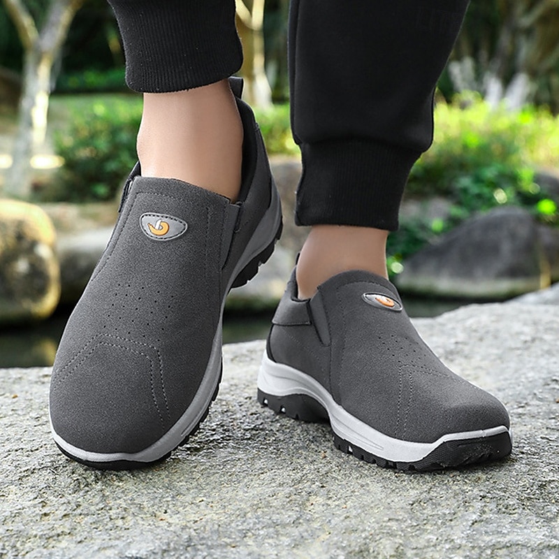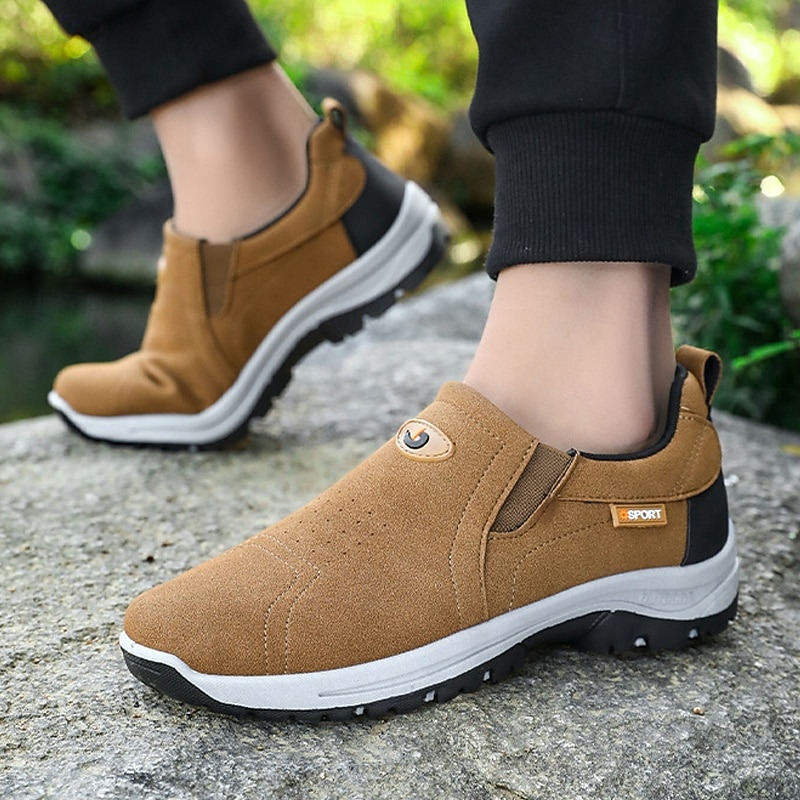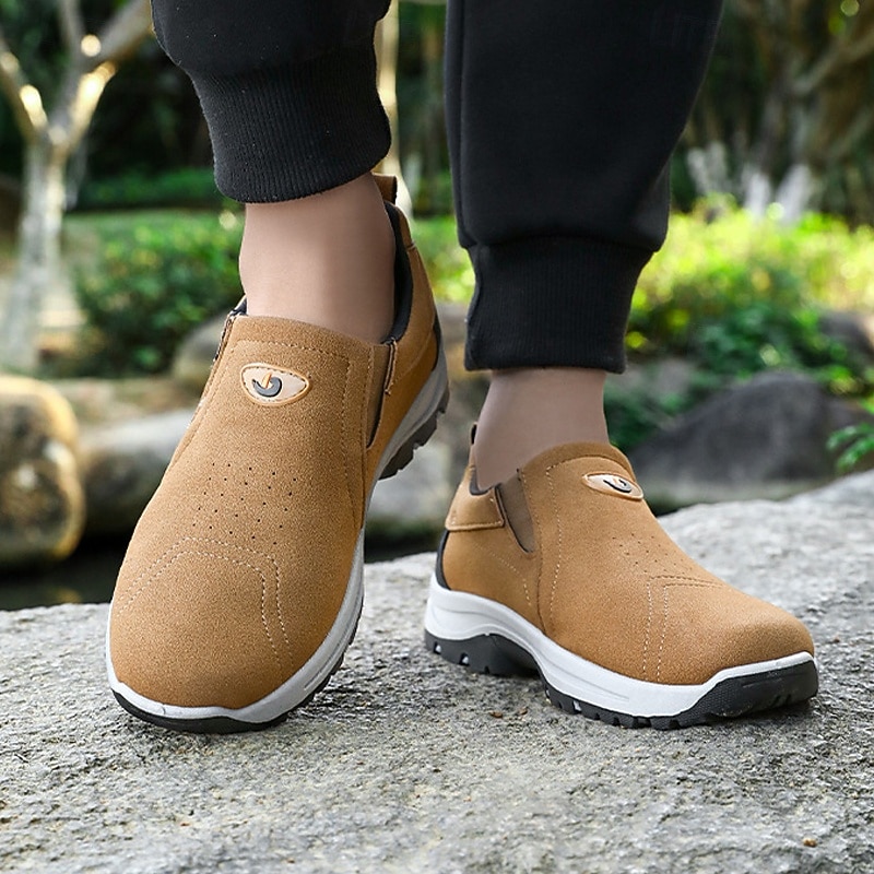 HOT ! Men's Tan Slip-On Hiking Shoes - Lightweight Outdoor Walking Sneakers with Non-Slip Sole for Trekking and Daily Wear