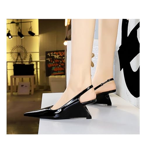 NSNEOND Women's Patent Leather Wedge Stiletto Heels Mules with Ankle Buckle Sexy Pointed Closed Pointed Toe Slip On High Heel Shoes for Wedding Party Dress Shoe 6