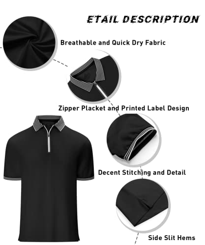 Men's Zipper Polo Shirt Short Sleeve Moisture Wicking Casual Golf Polo Shirt Quarter Zip Tops 4