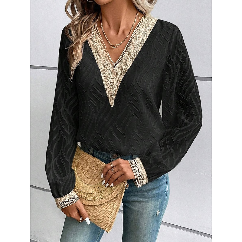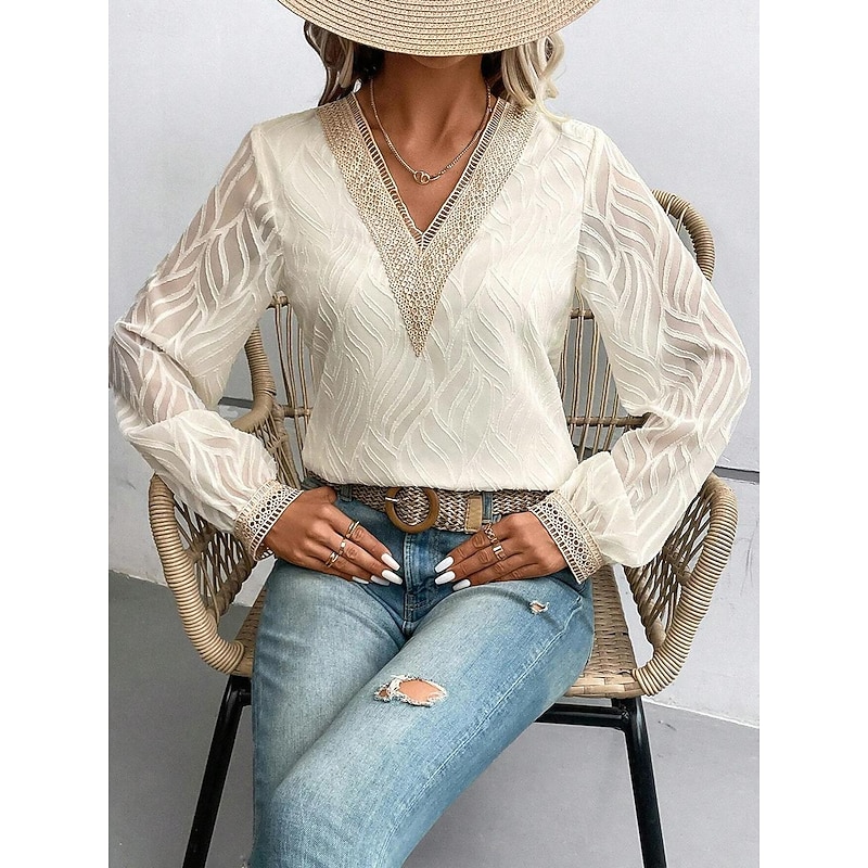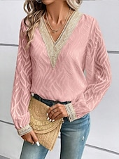 More information about Women's Blouse Dressy Tops Elegant Stylish Solid Color Lace Flutter Sleeve Long Sleeve Regular Tops V Neck Party Daily Black Pink Beige Summer Spring Fall