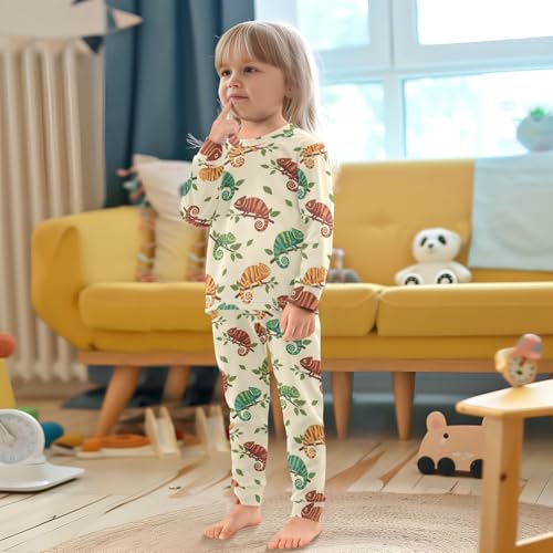 Pajama Sets Long Sleeve Chameleon Pattern on Branches Soft Comfy Sleepwear 2 Piece PJS 3-8T 2