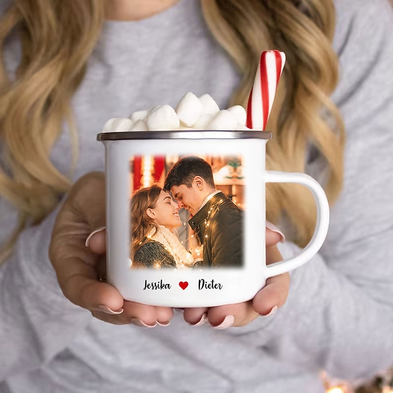 Personalized Photo Enamel Mug Custom Best Gift for Couple, Customizable with Photo and Name, Perfect for Daily Use, Unique Valentine's Day Gift, Ideal Christmas Gift for Lovers, Family, and Friends 1