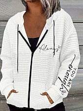 More information about Women's Textured Jackets Zip Up Hoodies Hoodies Letter Sports Fashion Casual Long Sleeve Hooded Regular Tops Street Dailywear Zipper Pocket Print White Fall Winter