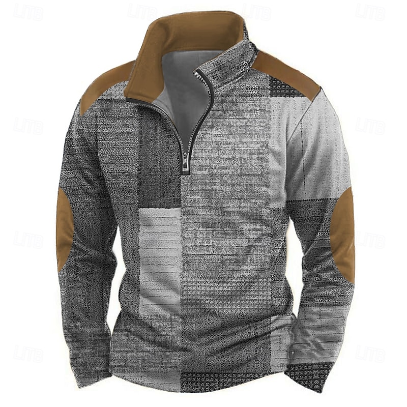 More information about Men's Geometric Abstract Sweatshirt Casual Long Sleeve Stand Collar Vacation Streetwear Blue Purple Zipper Quarter Zip Fall Winter Designer