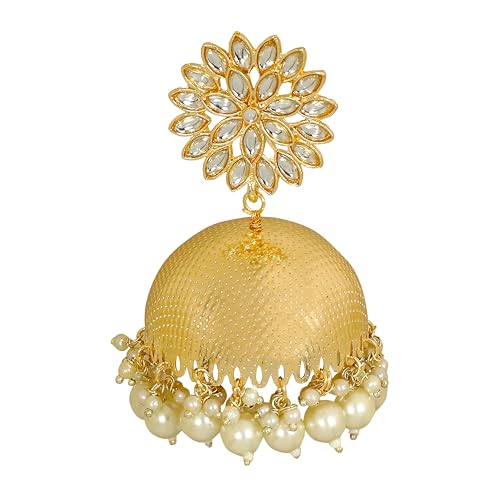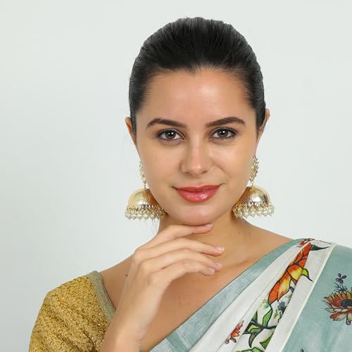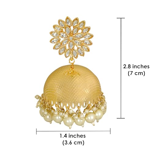 Ethnic Indian Gold-Toned Pearl and Kundan Stone Jhumka Earrings for Women 5