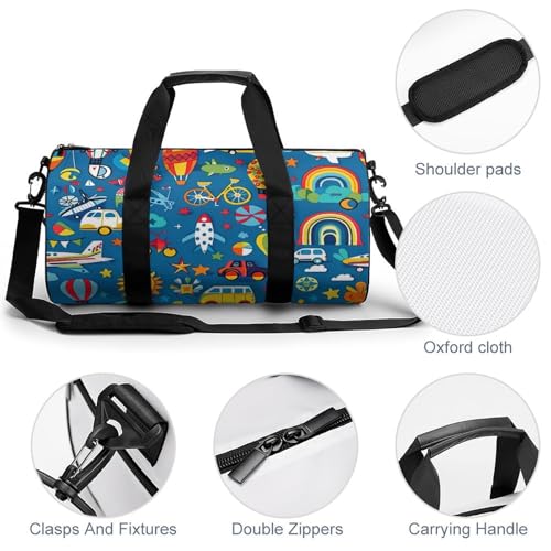 Car Airplane Hot Air Balloon Gym Bag for Women Men Travel Duffle Bag Carry on Weekender Tote Bag Lightweight 7
