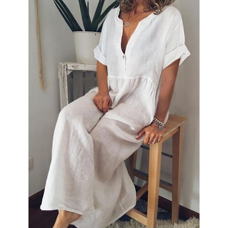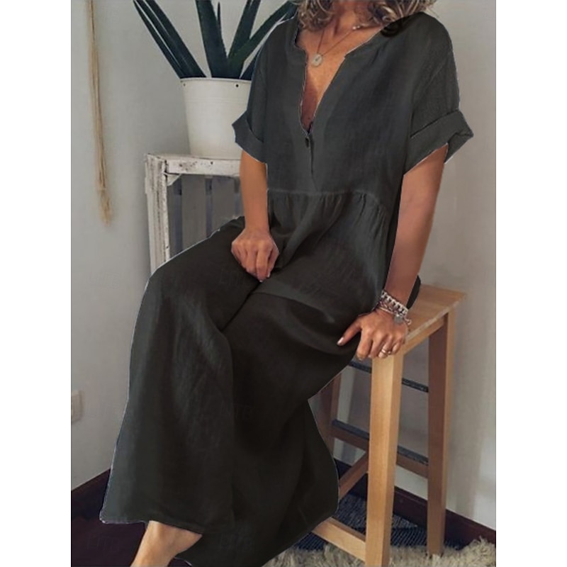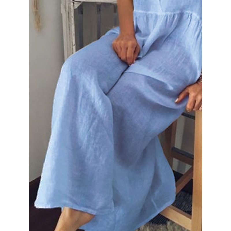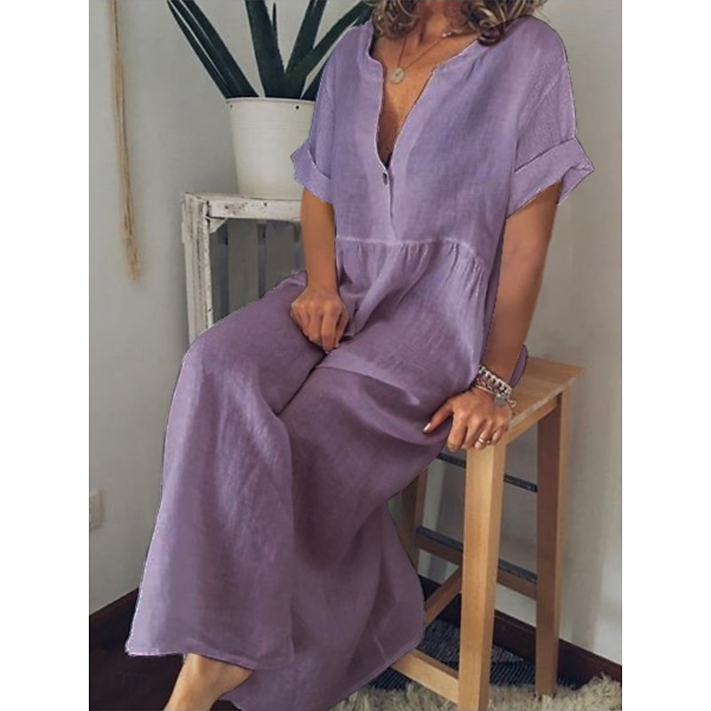 More information about Women's Maxi Dress Cotton Linen Dresses Casual Dress Basic Casual Vacation Daily Regular Fit Plain Short Sleeve V Neck Black White Purple Light Blue Summer