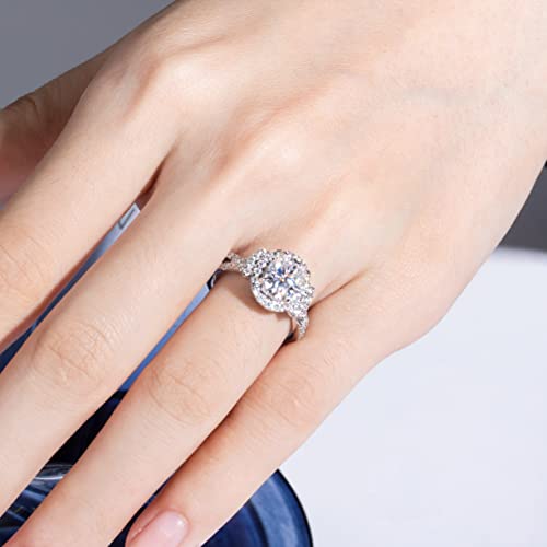 • UNIQUE QUALITIES: This stunning engagement ring features a 7x9 mm, 2 carat oval cut center Moissanite, which is surrounded by 1.5 mm 26 pieces round brilliant Moissanite to create a halo, additional 32 pieces 1.2 mm Moissanites sparkle on the twisted shank, the breathtaking design further enhances the central gem more glamorous. Pair with a matching contoured ring enhancer completes this perfect ensemble, Making you focus of the feast, banquet, meeting, dating, prom, party