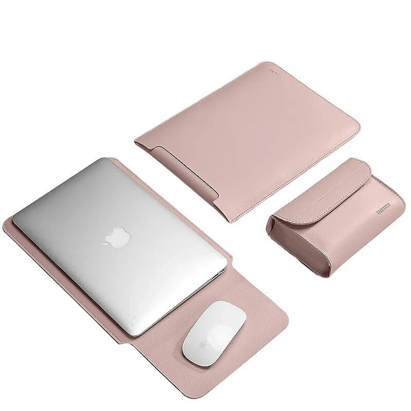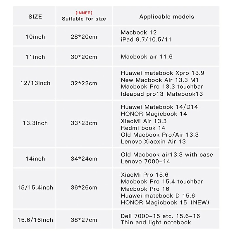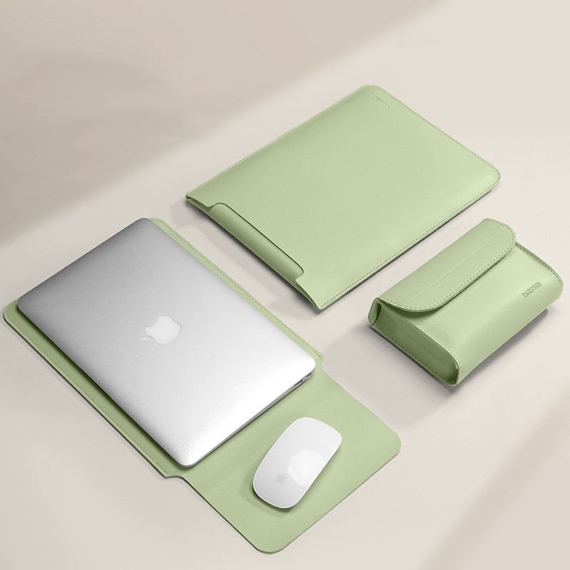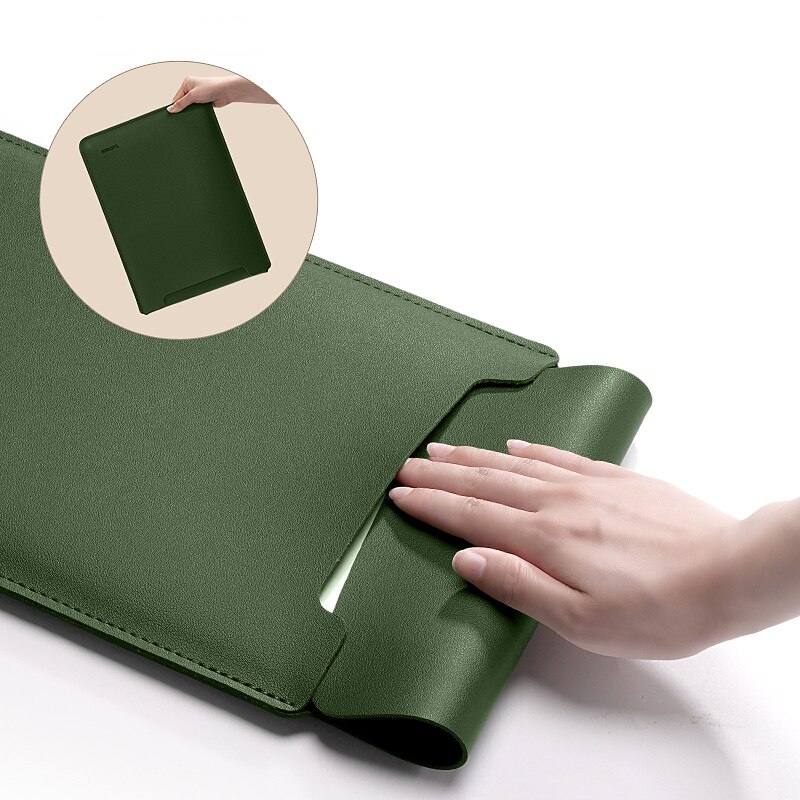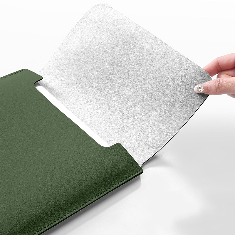 Highlights Product Selling Points: 1. Wide Compatibility: Compatible with various MacBook models, iPad Pro, Dell XPS/Latitude, HP Pavilion, Lenovo, and HUAWEI MateBook. 2. Premium Material: Made of elegant faux leather with a soft lining, ensuring water and scratch resistance. 3. Sleek and Portable: Slim design allows for easy carrying by hand or fitting into a handbag/shoulder bag, perfect for everyday use. 4. Convenient Storage: The pouch provides a dedicated space for small accessories like cables, mouse, and earphones. 5. Safe for Electronics: Non-magnetic design ensures the safety of your electronic components from potential damage.