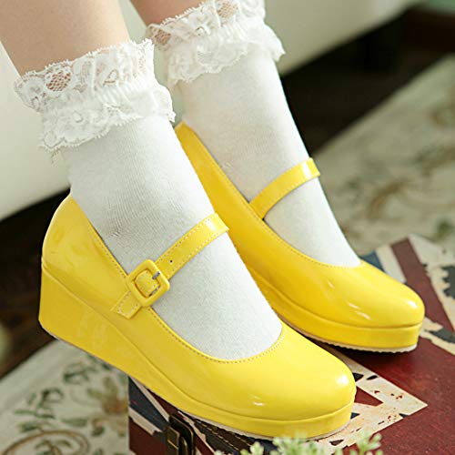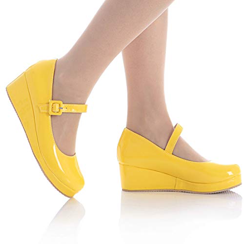 MAVMAX Women's Wedge Mary Jane Round Toe Lolita Shoes Platform Mid Heel Pumps 7