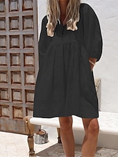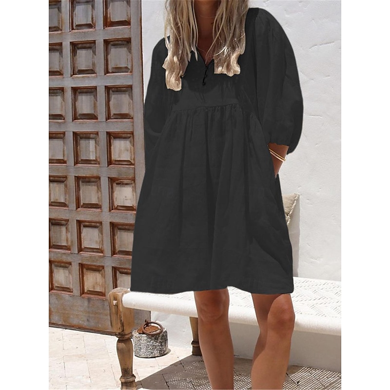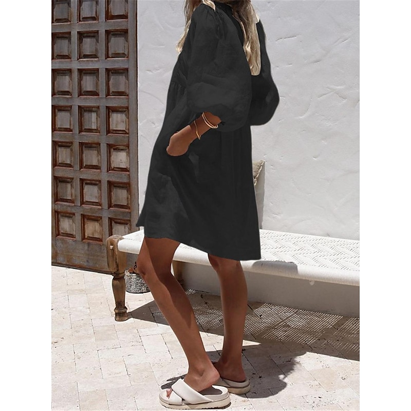 More information about Women's Mini Dress White Dress Cotton Linen Dresses Black Dress Casual Dress Basic Modern Daily Weekend Loose Fit Plain 3/4 Length Sleeve V Neck Black White Rose Red Summer Spring