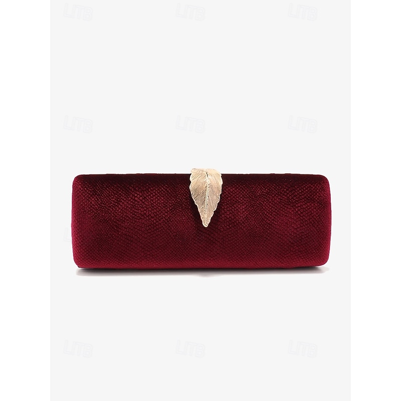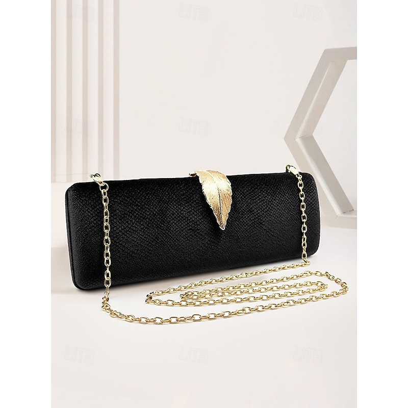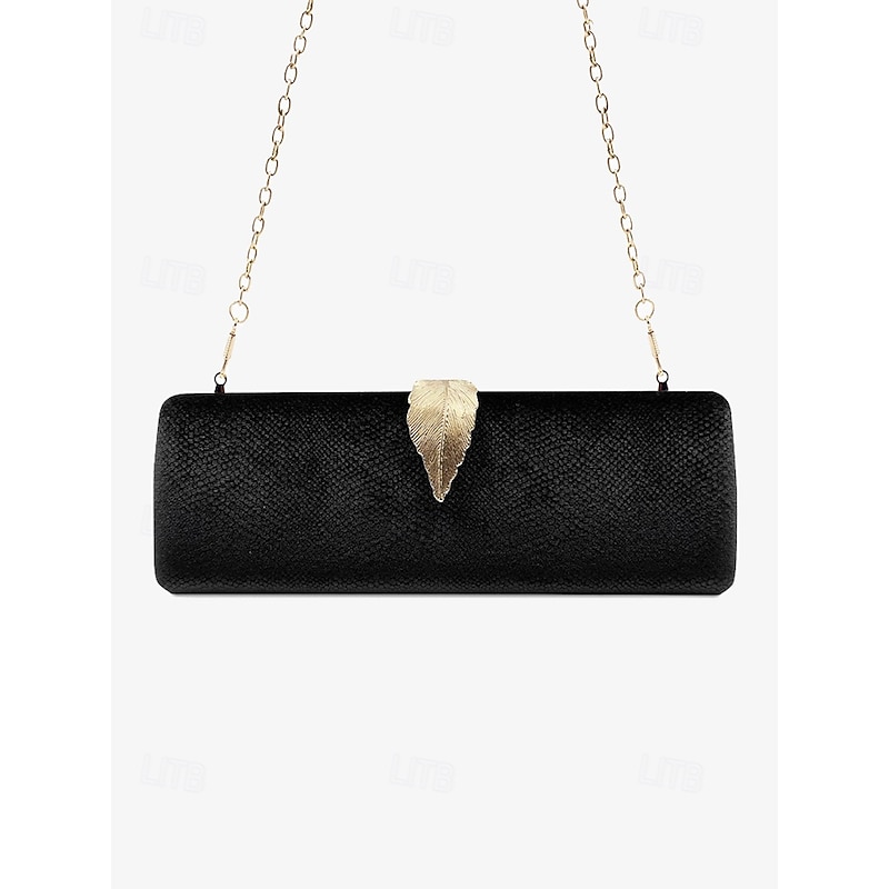 HOT ! Women's Velvet Clutch Bag with Gold Feather Accent and Chain Strap - Elegant Evening Bag for Formal Events and Parties